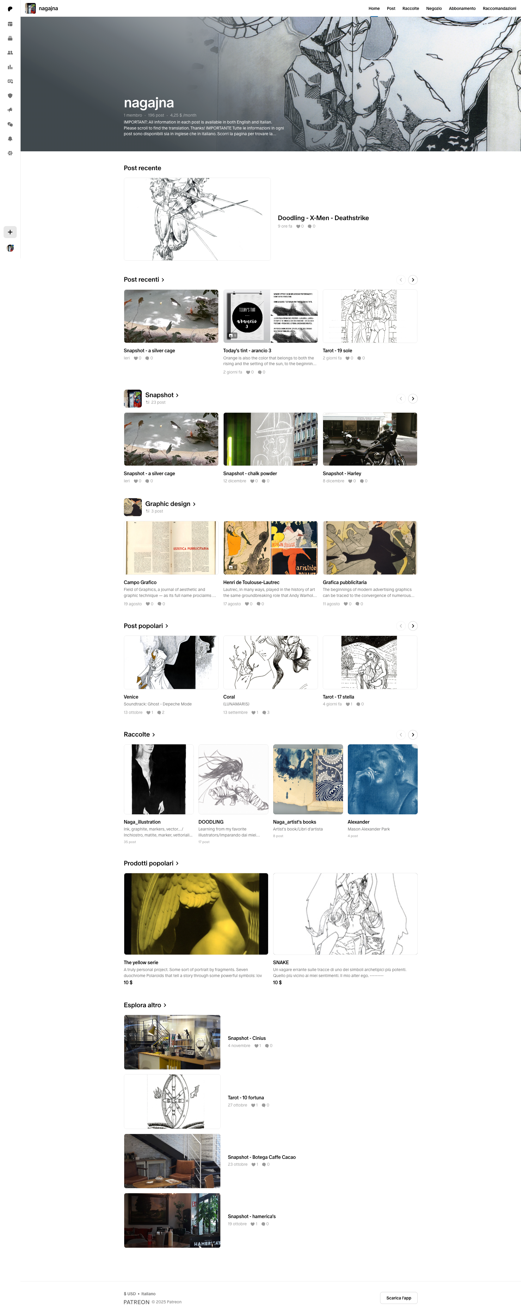 Se volete supportare il mio lavoro o dare un occhiata più da vicino, approfondire aspetti legati alla comunicazione visiva o scoprire tecniche e materiali per ampliare e rifinire i vostri progetti, passeggiare con me per Milano... vi aspetto qui: PATREON/NAGAJNA