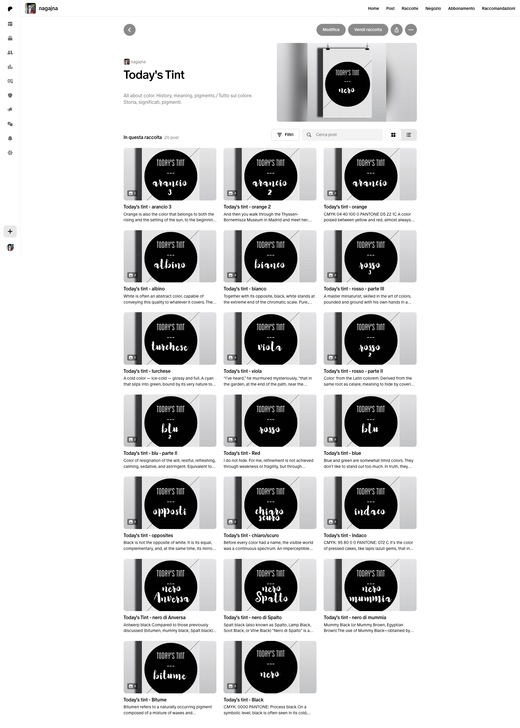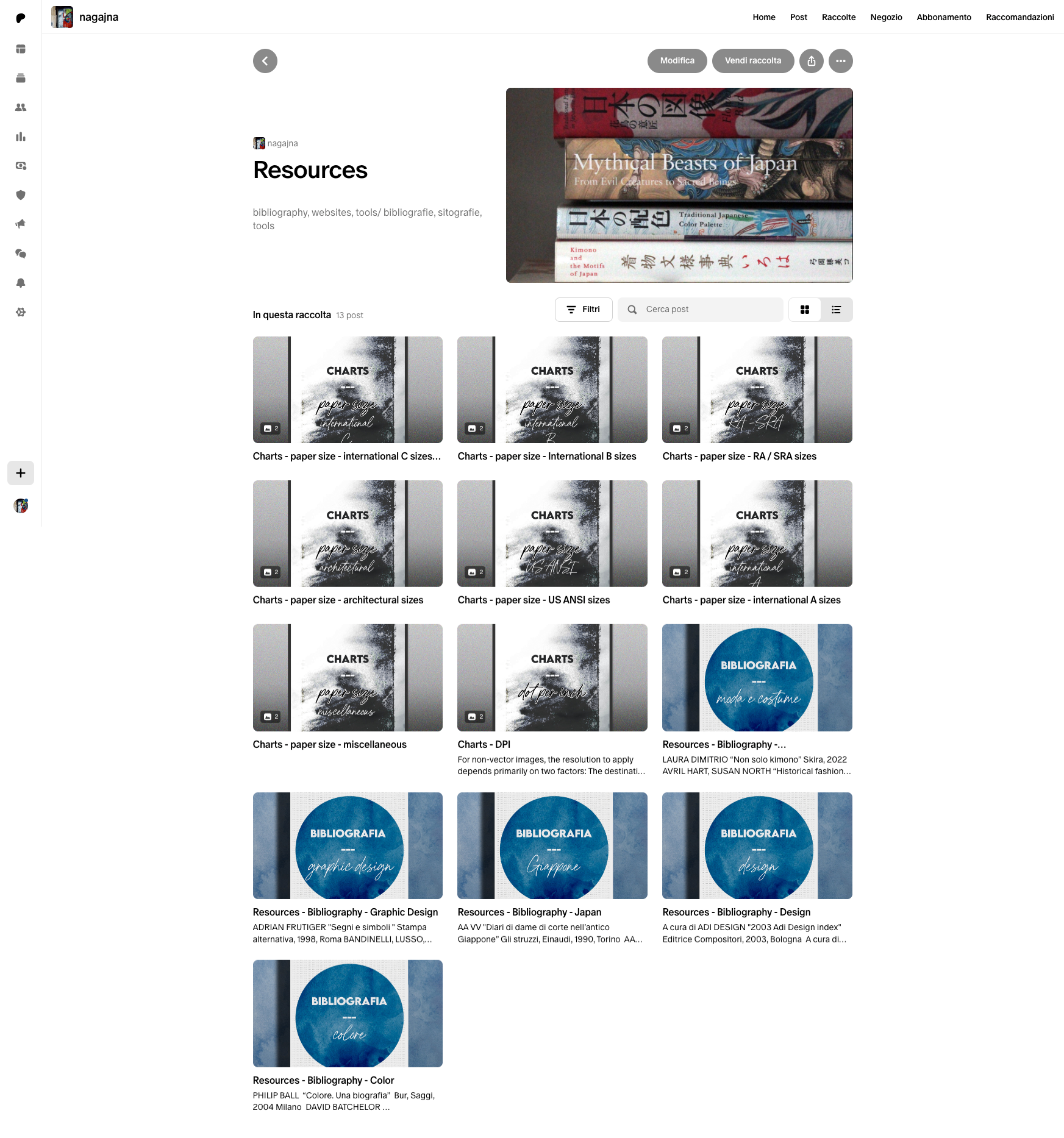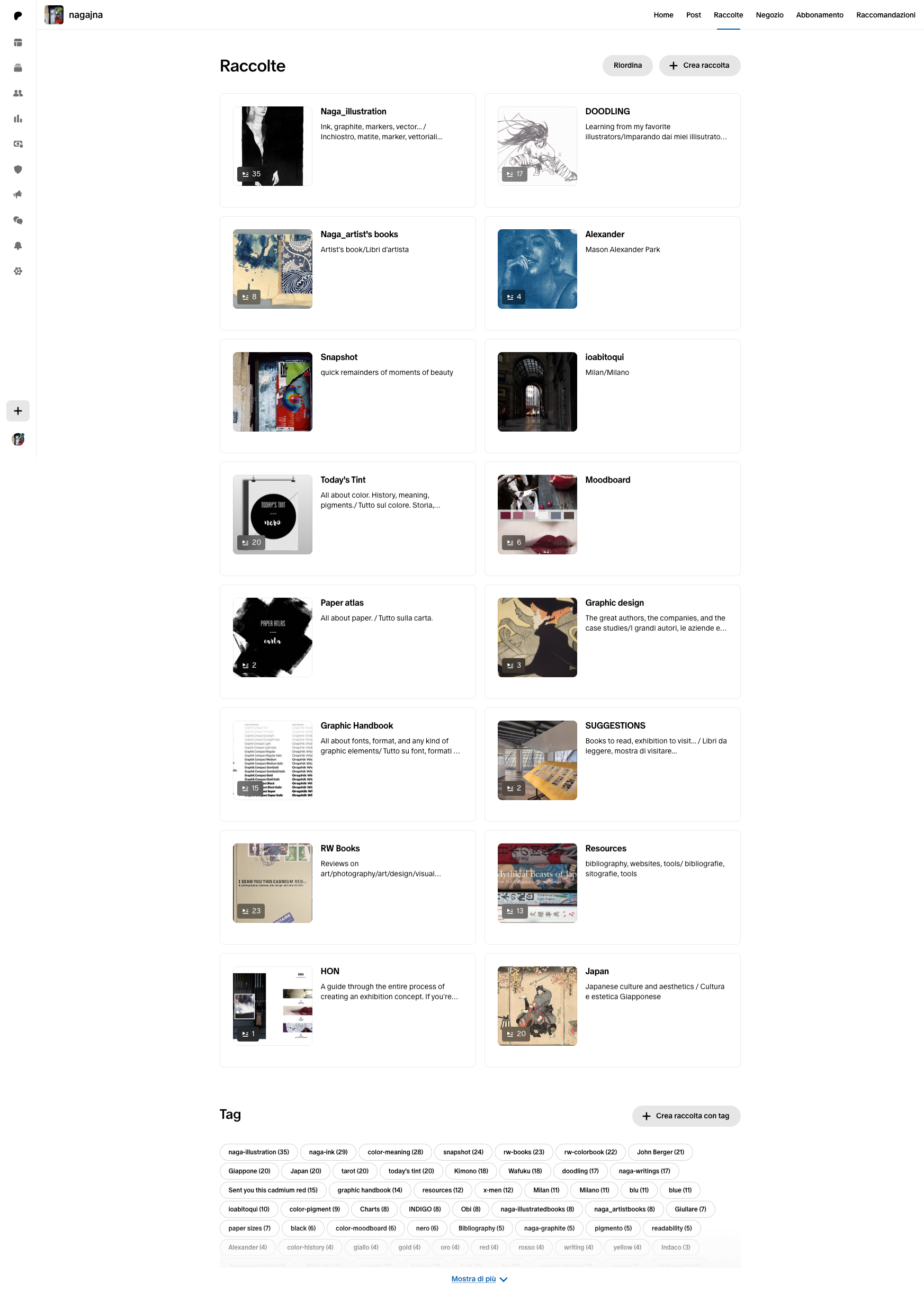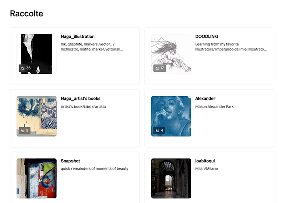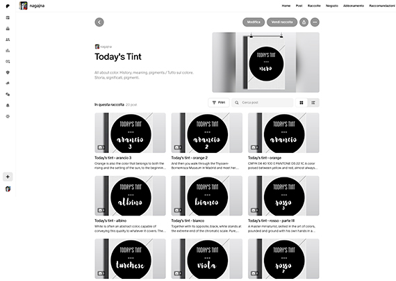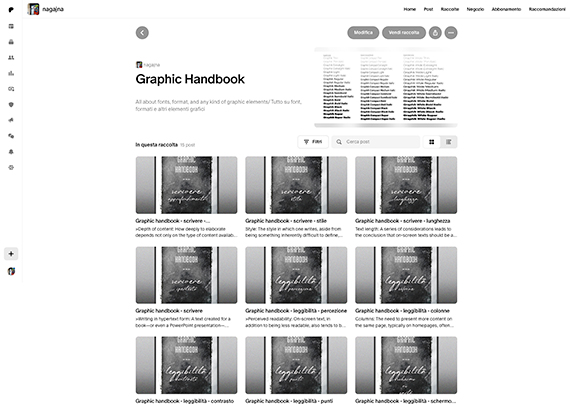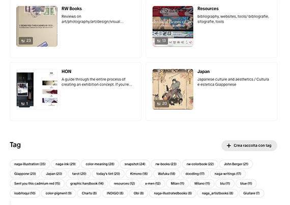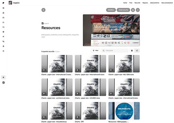 Cosa potete trovare nel mio account? Tutti gli argomenti che più mi appassionano. Condividerò con voi, oltre al mio lavoro, risorse, informazioni e appunti su Grafica, Design, Arte e Giappone. Recensioni e suggerimenti su libri e mostre. Moodboard e discussioni intorno a storia, significato e produzione del colore. Post tematici su peculiarità e resa di diverse tipologie di carta. Note su tecniche di stampa, rilegatura e fotografia.