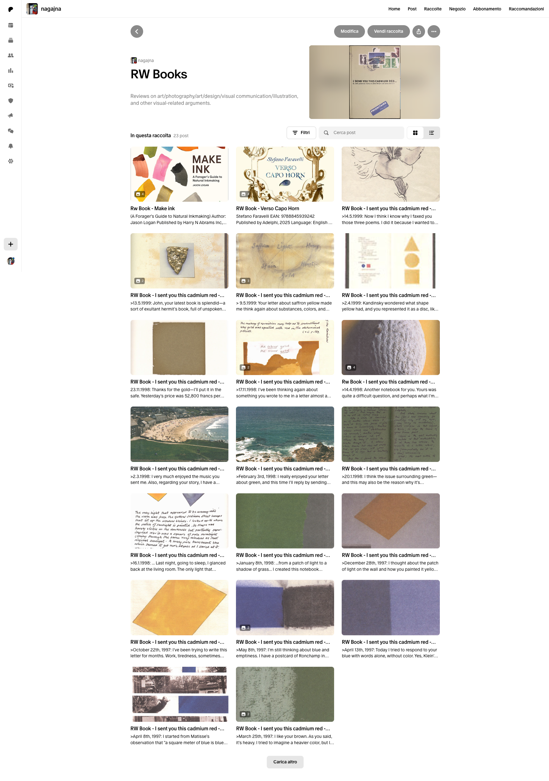 - libri (riviste, artbook, libri d’artista, poesia...) - Post tematici su: